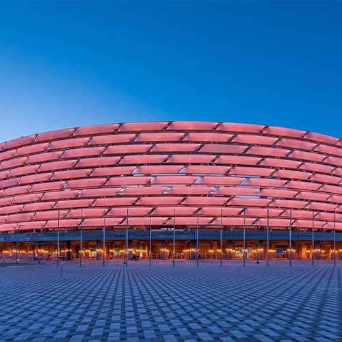 The construction of the Baku Olympic Stadium with a capacity of 69780 spectators, near Lake Beugshor, was initiated by the decree of President Ilham Aliyev in November 2011.